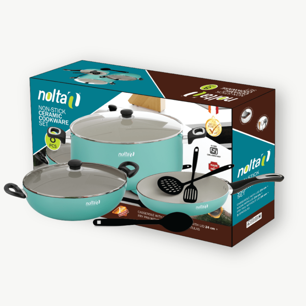 Biriyani Pot with Lid 24cm + Kadai with Lid 24 cm + Fry Pan w.o Lid 26cm + 3 Spatulas (4 Set / Carton)
